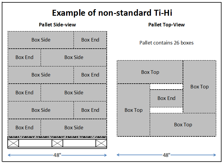บางครั้งเรื่องง่าย ๆ บางเรื่องในคลังเราอาจไม่เคยรู้และมองข้ามในทันทีก็มีนะครับ วันนี้ขอยกตัวอย่างเรื่อง การเรียงสินค้าบนพาเลท (Palletize) พาเลทนั้นอาจะมีหลายขนาด แต่การวางสินค้าบนพาเลทคือการจัดสินค้าให้สอดคล้องกันระหว่าง กว้างยาวสูง (TiXHi), น้ำหนักทั้งหมดที่พาเลทและพื้นที่จัดเก็บวางได้ (Load Limited)